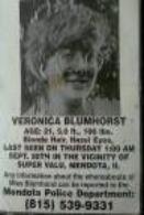 | Update 9/29/13. Todd Blumhorst, Veronica's brother and leader in the fight to not give up the search passed away. Todd was recently diagnosed with cancer. Although he was a fighter for victims everywhere, Todd was unable to fight the cancer. As it currently stands Todd was unable with the help of many others to find Veronica. At this point he is finally reunited with her. |